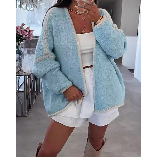 Per donna Felpa Cardigan Streetwear Casual Blocco di colori Girocollo Patchwork Lavorato a maglia Manica Lunga Top Regolari Maglia Ferie Uscire Weekend Nero Rosa Autunno Inverno