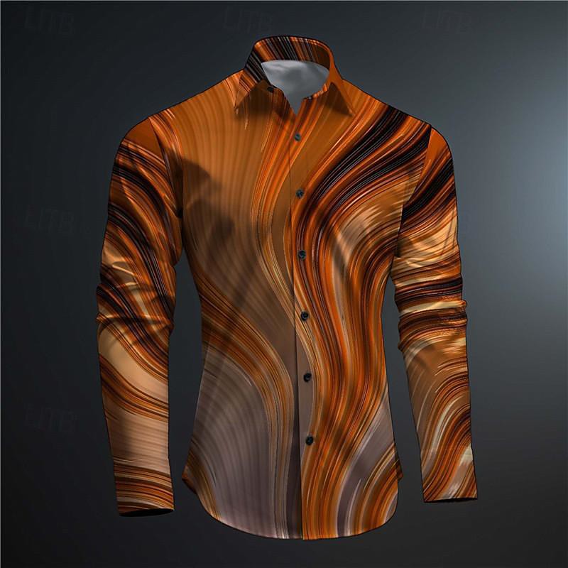 Men's Printed Shirts Long Sleeve Subcultural Vacation Party Street Spring Summer Turndown Print Button-Down Blue RedPink Red Navy Blue Purple