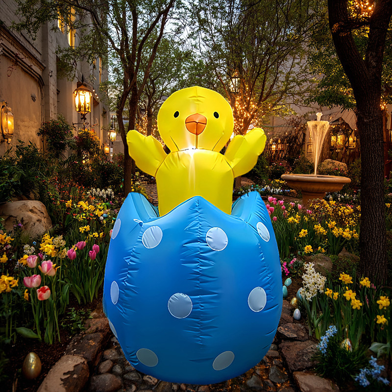 Easter Inflatable Decoration with LED Lights Indoor and Outdoor Decoration 1.35M/4.43 Chick Shell Breaking Height Adjustable Easter Egg Courtyard Lawn Garden Party Festive Atmosphere Decorative Light