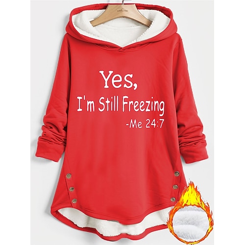 Felpa con Cappuccio da Donna Sweatshirt Pullover Fodera in Fleece Pigiama Caldo Fuzzy Comfrt Fodera in Fleece Sherpa Lettere Stampa Sport Casual Maniche Lunghe Nero Rosa Scuro Rosso Blu Grigio