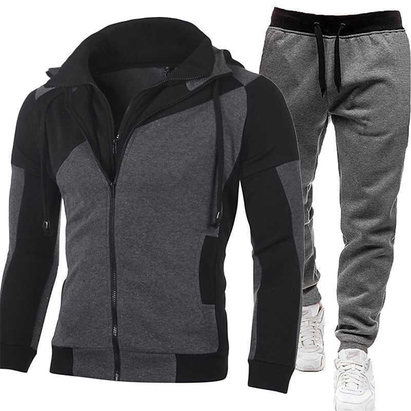 Men's Tracksuit Sweatsuit Jogging Suits White suit Logo can be customized Black set Light gray black pants Dark gray black pants Sports Outdoor Sportswear Clothing Apparel Hoodies Sweatshirts