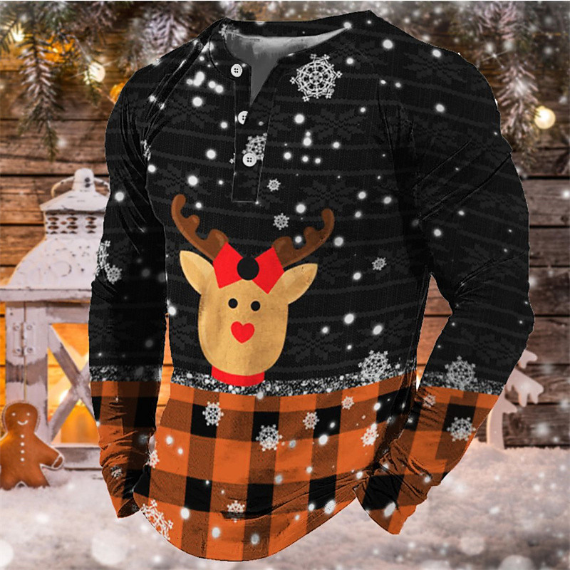 Christmas T Shirt Men's Henley Shirt T shirt Tee Tee Graphic Elk Henley Green Blue Orange Red Gray 3D Print Outdoor Christmas Long Sleeve Patchwork Button-Down Clothing Apparel Basic Designer Casual