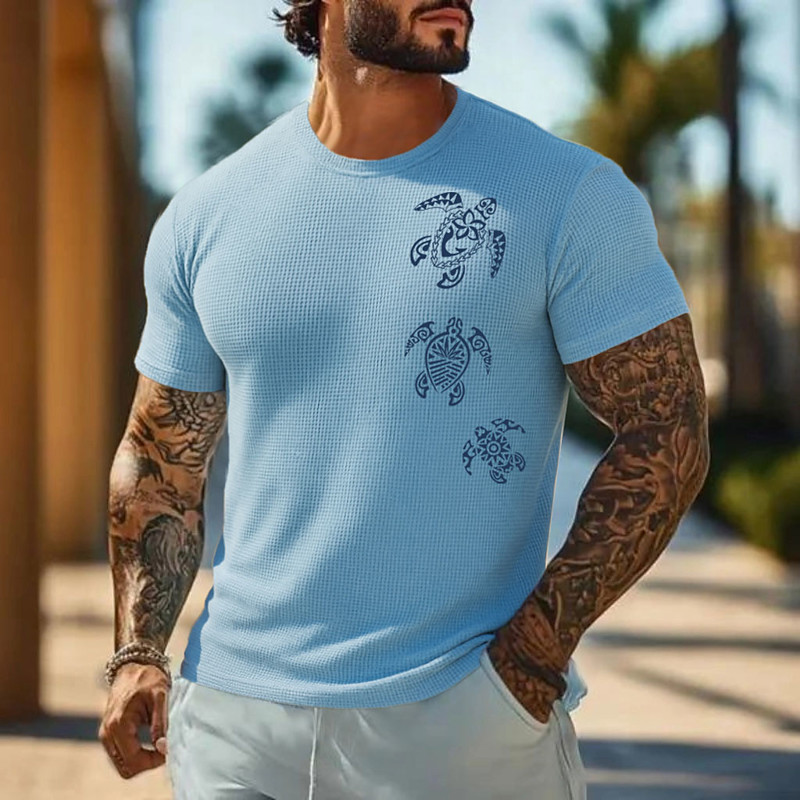 Men's Turtle Maori Waffle Shirt Short Sleeve T shirt 3D Print Crew Neck Shirt Vacation Tropical Daily Vacation Casual Daily Light Blue Light Green Pink Summer Spring Clothing Apparel S M L XL XXL XXXL