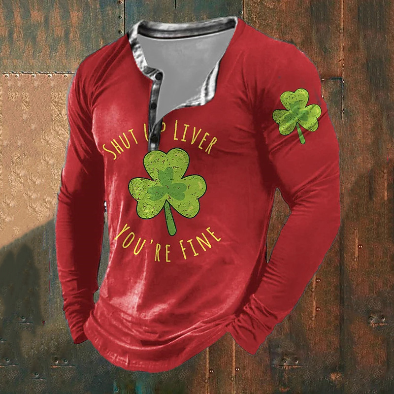 St Patrick St Paddy Shamrock Men's Casual Fashion Retro Vintage 3D Print T shirt Tee Henley Shirt Sports Outdoor Holiday Going out St. Patrick T shirt Black Red Brown Long Sleeve Henley Shirt