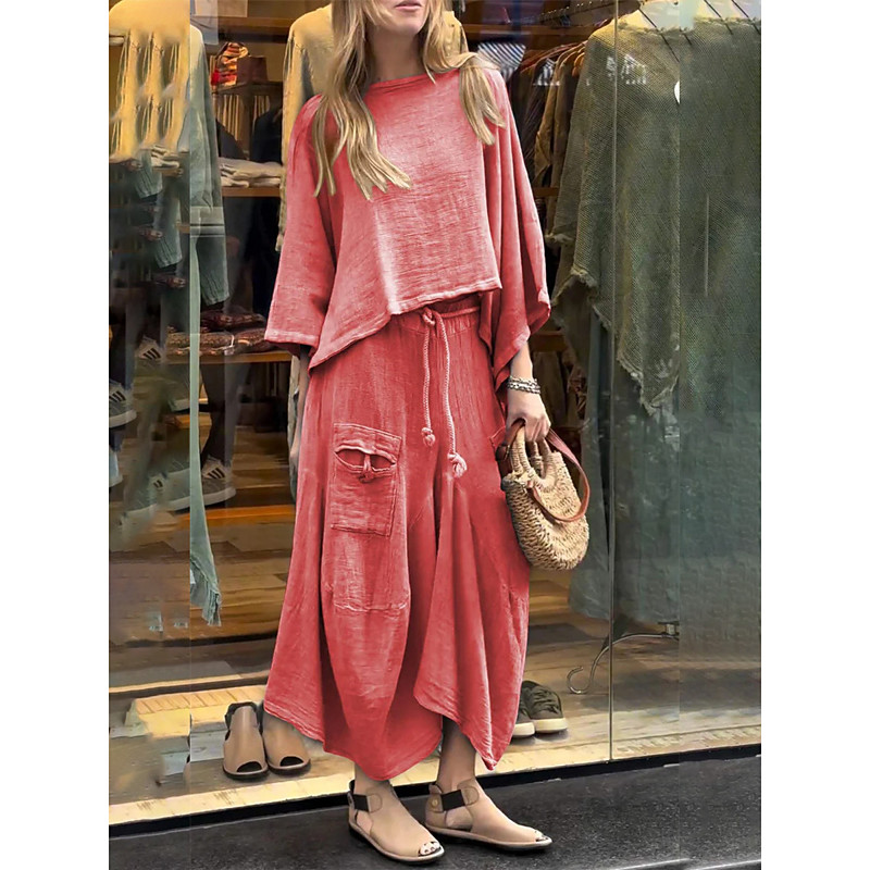 Women's Elegant Fashion Basic Pants Sets Long Sleeve Round Neck Solid Color Outdoor Work Casual Black White Yellow Summer Regular Fit