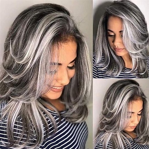 Lange, geschichtete graue Perücken für Frauen, silberne, gewellte Perücke, natürlich aussehende Haarersatzperücken, synthetische, hitzebeständige Haarperücke für den täglichen Gebrauch auf Partys,