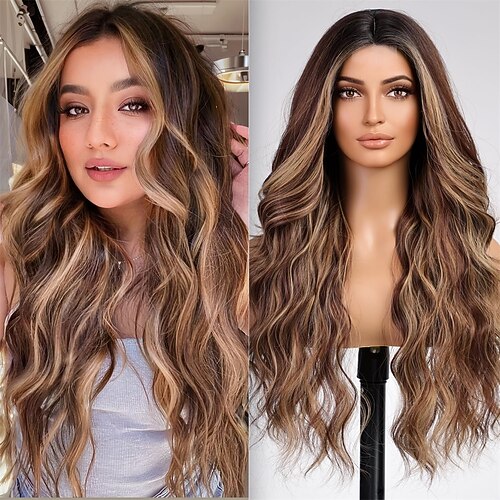 Ombre-grüne Perücke, lange grüne gewellte Perücke für Damen, gelockte gewellte Perücke mit Spitzenvorderteil vorne, natürlich aussehende synthetische hitzebeständige Faserperücke für den täglichen