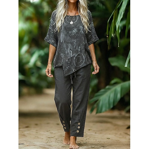 Per donna Set da due pezzi Set di Pantaloni Bolero Manica Corta Girocollo Stampa Moda Streetwear Casuale Quotidiano All'aperto Grigio scuro Estate Vestibilità comoda