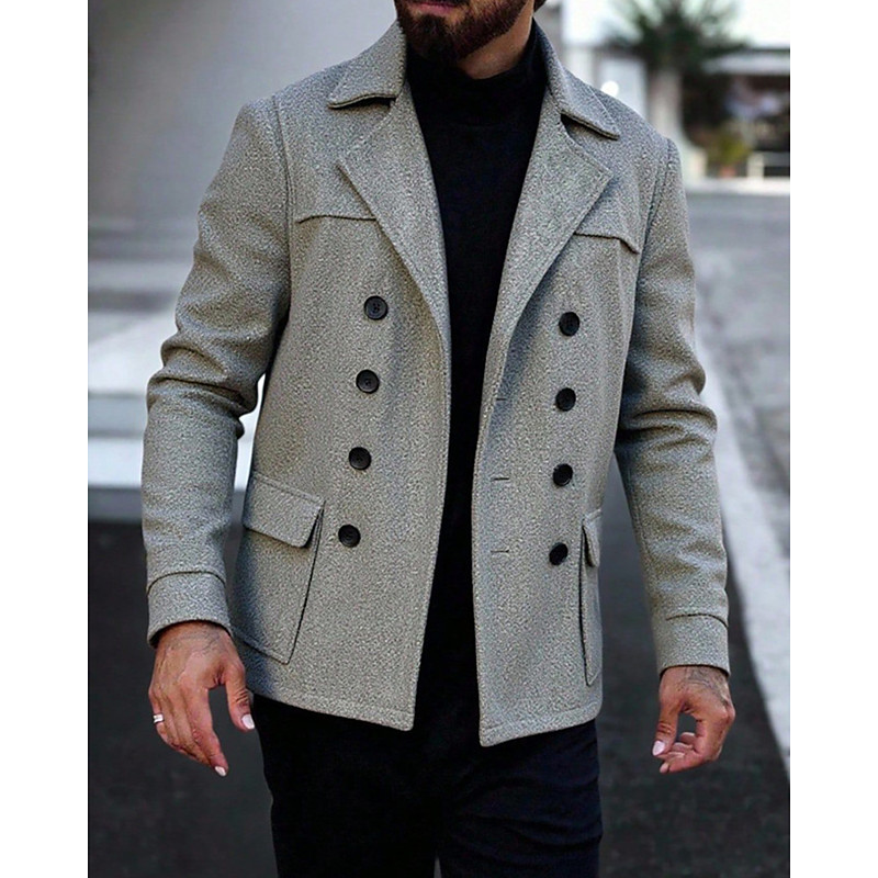 Men's Peacoat Trench Coat Vacation Daily Fall Winter Polyester Warm Outerwear Clothing Apparel Fashion Classic Plain Pocket Lapel Double Breasted