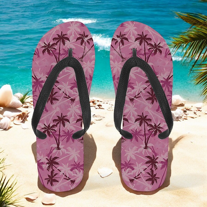 Unisex Tropical Sunset Flip Flops – Vibrant Beach Sandals with Palm Tree Print for Summer, Pool and Vacation Wear