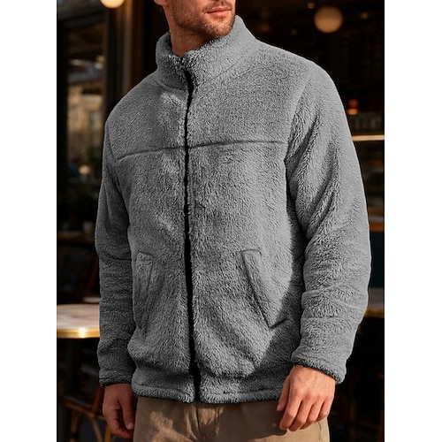 Per uomo Giacca da Esterno Giacca in Pile Formale Casa Calore Termico Cerniera Tasca Autunno Inverno Tinta unica Attivo Neutro Colletto a Camicia Regolare Nero Blu marino Cachi Caffè Grigio Giacca