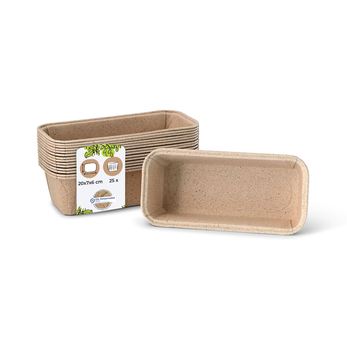 BIOZOYG 25 Stück Backform 20 x 7 x 6 cm Kakaopapier, Rechteckige Kastenformen - Kompostierbare Kuchenform, Backschale, biologisch abbaubar
