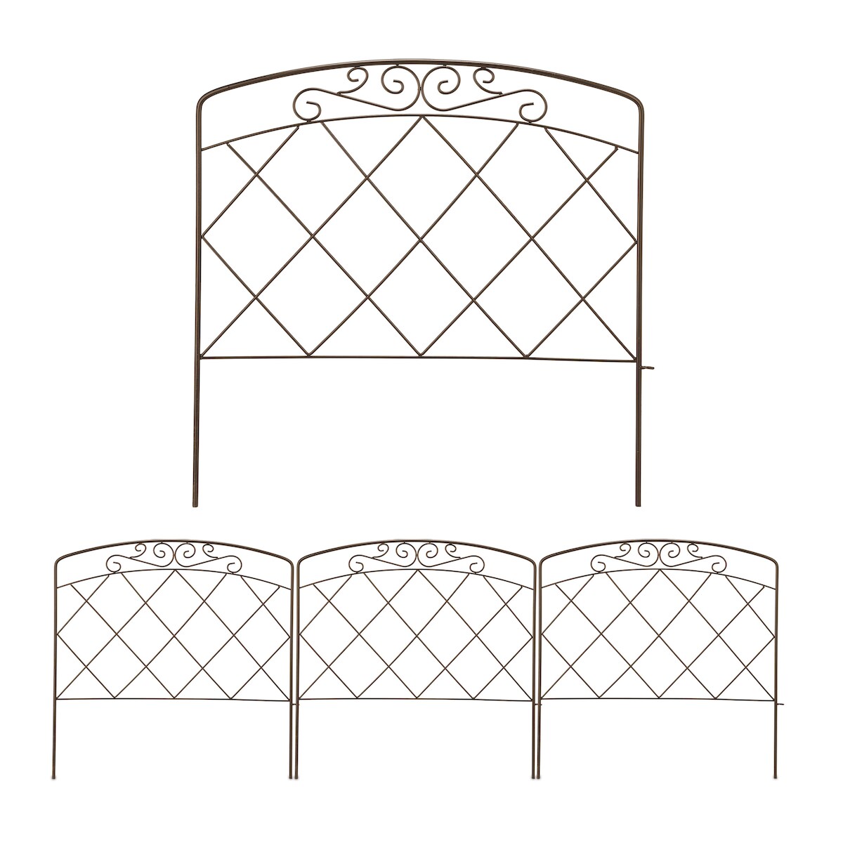Relaxdays Beetzaun, 4 Zaunelemente, HxB je 60 x 62,5 cm, Garten Beeteinfassung zum Stecken, Metall, Vintage-Look, bronze
