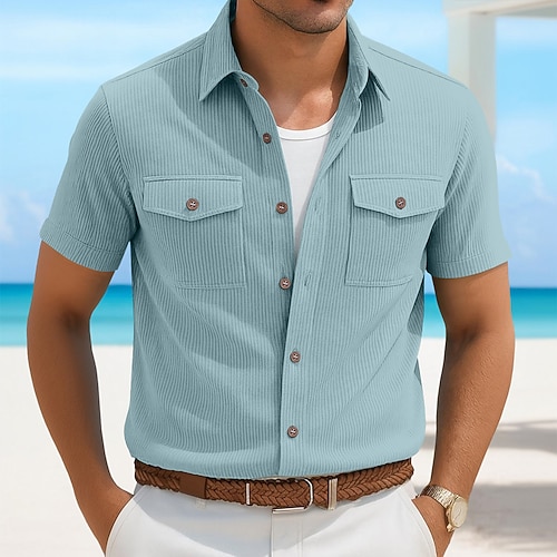 Per uomo Camicia Camicia Estiva Camicia casual Camicia di Velluto a Coste Camicia con Bottoni Camicia cargo Nero Bianco Blu marino Azzurro cielo Kaki Manica Corta A righe Bavero Casuale Quotidiano