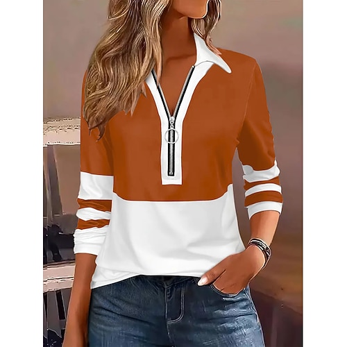 Per donna Tunica Tinta unica Blocco di colori Elegante Vintage Essenziale Manica Lunga Girocollo Top Regolari Quotidiano Zip a un quarto Nero Vino Blu Marrone Verde Primavera Autunno