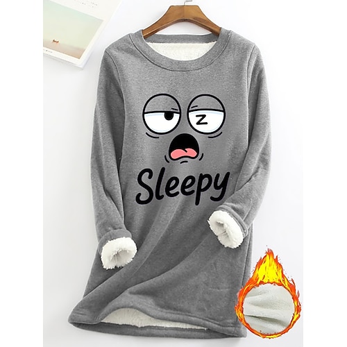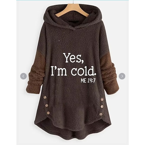 felpa da donna con fodera in pile, felpa da pigiama, felpa con cappuccio, sì, ho freddo, lettera, streetwear, casual, manica lunga, scollo a V, top normali, casa, strada, vacanza, stampa, nero, rosa, blu navy, grigio chiaro