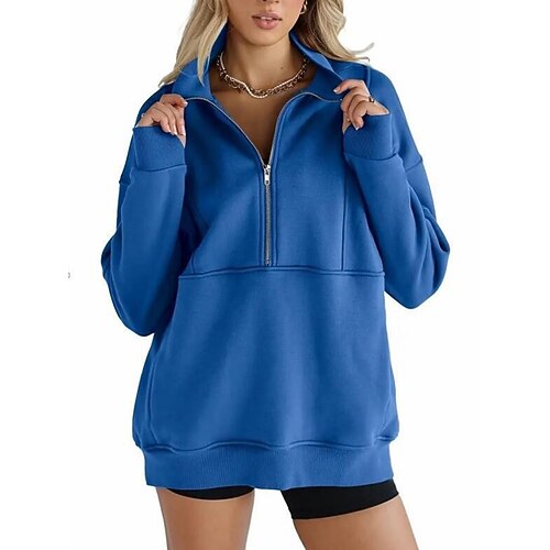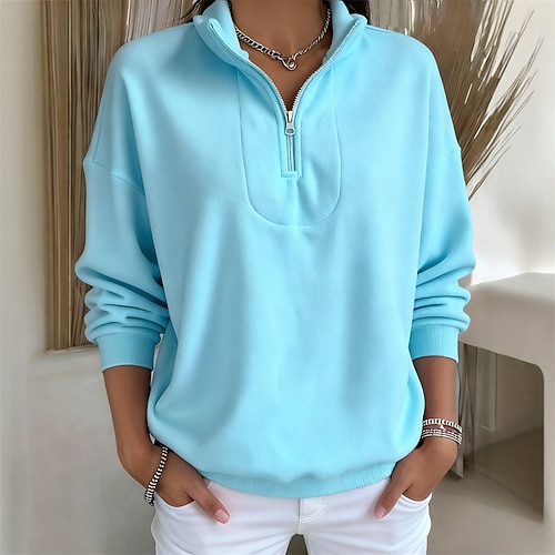 Per donna Felpe con cerniera Moda Casual Comodo Manica Lunga Mezza zip Top Regolari Casa Lavoro Casuale Patchwork Cerniera Tasca Nero Bianco Rosa Rosso Blu Autunno Inverno