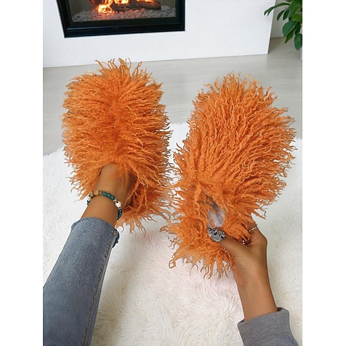 pantofole da donna in pelliccia sintetica rosa fuzzy con fodera in morbida peluche, morbide pantofole invernali da interno per il calore comfort, stile divertente e distintivo per la casa, il salotto