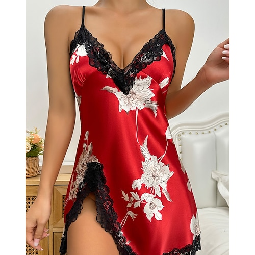 Per donna Camicia da Notte Casual Morbido Raso Floreale Senza schiena Vestiti Quotidiano Casa Da letto Senza Maniche Spalline Nero Champagne Verde chiaro Rosa Verde Estate Vestibilità comoda
