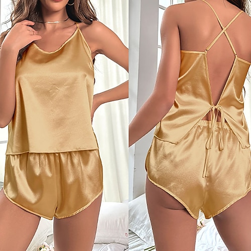 Per donna Abbigliamento da Casa Set Pigiama Moda Casual Morbido Colore Puro Patchwork Senza schiena Shorts Casa Vacanza Senza Maniche Scollo a V Nero Bianco Champagne Verde chiaro Rosa Estate