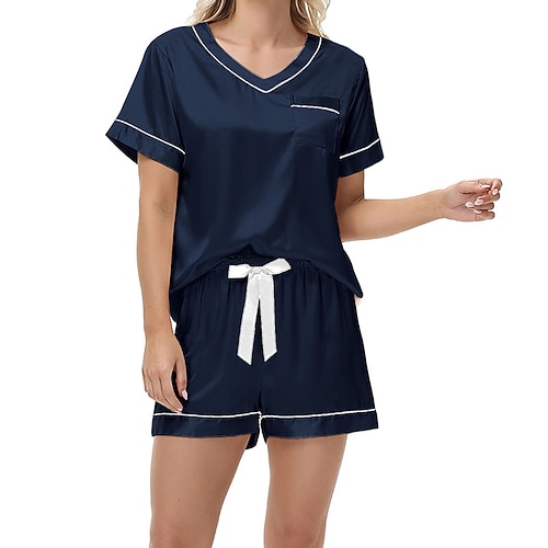 Per donna Abbigliamento da Casa Set Pigiama Moda Casual Morbido Colore Puro Patchwork Elastico in vita Shorts Casa Vacanza Manica Corta Scollo a V azzurro cielo Nero Champagne Rosa Marrone Estate