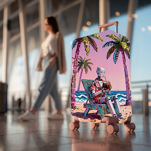 Coprivaligia elasticizzato stampato in stile spiaggia, coprivaligia elastico da viaggio