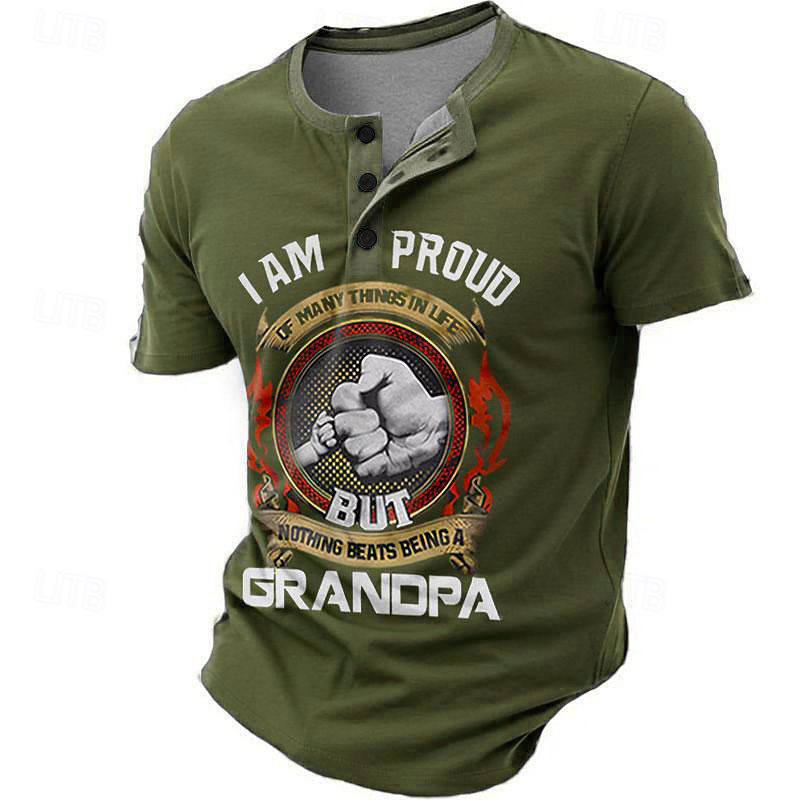 Papa Shirts Grandpa Word Daily Henley Street Style Men'S 3D Print T Shirt Tee T Shirt Green Short Sleeve Henley Collar Shirt Summer Spring Clothing Apparel S M L Xl Xxl 3Xl