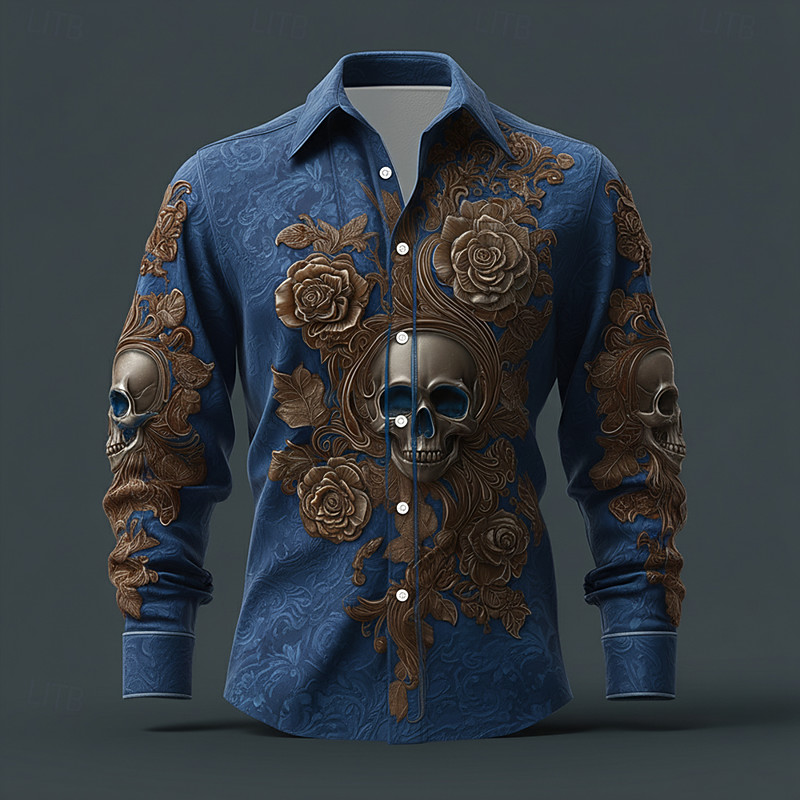Men's Skull Floral Print Day of the Dead Shirt Button Up Shirt Long Sleeve Vintage Retro Dark Gothic Style Outdoor Holiday Spring Fall Turndown 3D Print Collared Shirts Black Red Blue Orange Brown