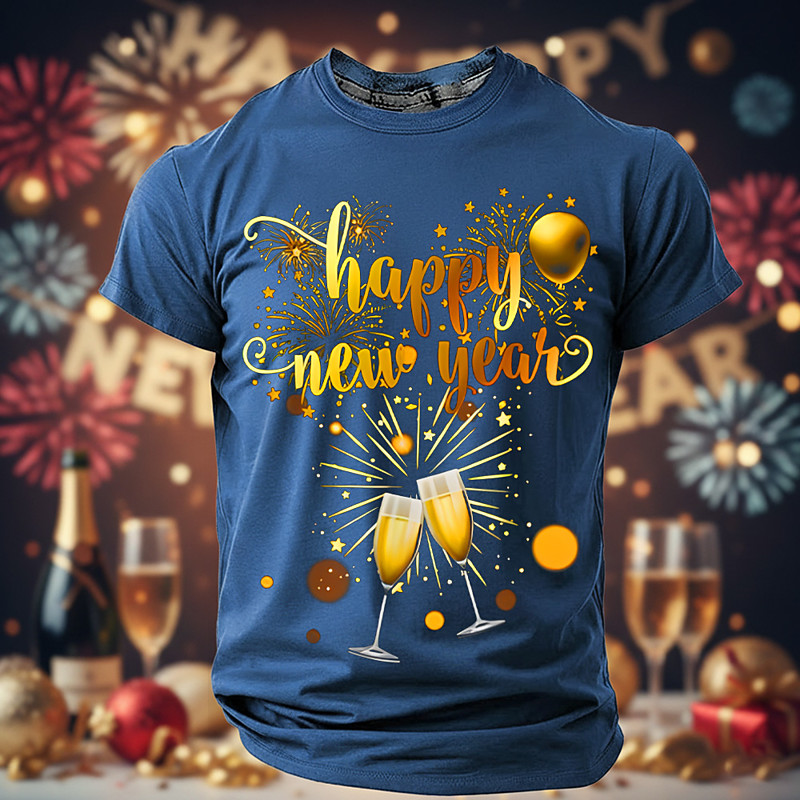 New Year Men's Happy New Year Fireworks 2026 T Shirt Short Sleeve T shirt 3D Print Crew Neck Shirt Exaggerated Designer Artistic Party Street Club Blue 1# Black Red Fall Winter Clothing Apparel S M L