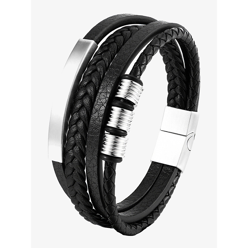 Men's Braided Leather Bracelet with Gold Accents – Modern and Stylish Design