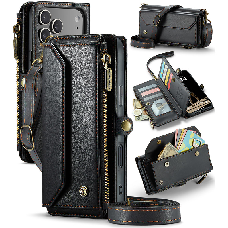 Phone Case For iPhone 17 Pro Max 17 Air 17 Wallet Case Detachable Zipper Support Wireless Charging TPU PU Leather