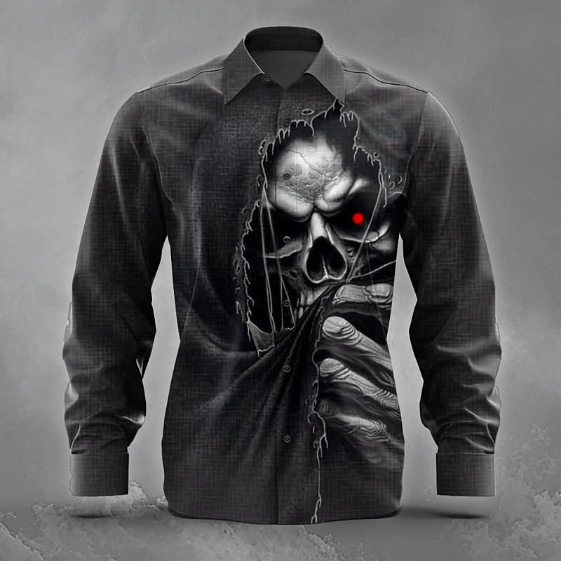 Men's Skull Death Ripped Shirt Button Up Shirt Long Sleeve Dark Punk Gothic Style Holiday Streetwear Summer Spring Turndown 3D Print Collared Shirts Black 1 Black 3 Black Black 2
