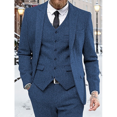 Herren Blazer Weste Anzughose Blazer Anzüge Geschäft Arbeit Hochzeit Mode Streetwear Herbst Winter Nylon Einfarbig 3 Teile Einreihig Blazer Schwarz Burgunderrot Marineblau Königliches Blau
