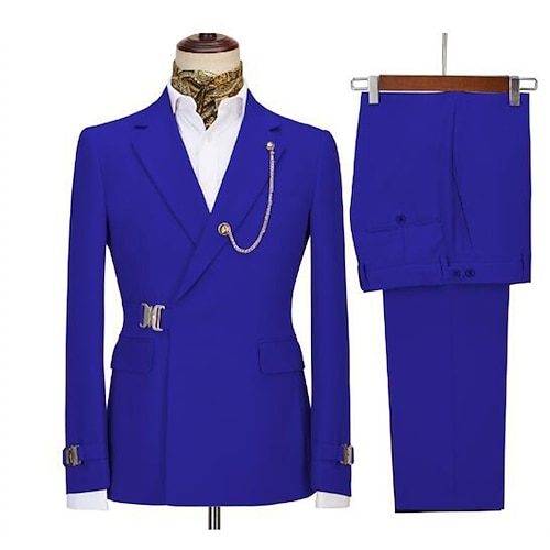 Herren Blazer Anzughose Blazerjacke Geschäft Arbeit Party Enthält ein Oberteil und ein Unterteil Vintage Mode Herbst Winter Nylon Einfarbig 2 teilig Einreihig Blazer Blau Dunkelgrau Schwarz Gelb