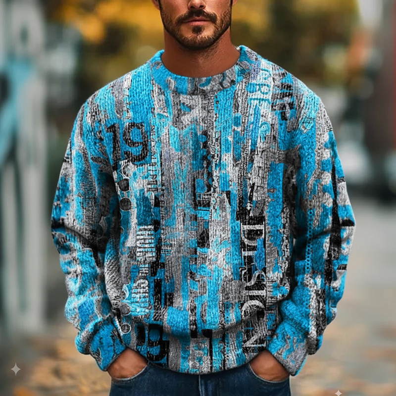 Men's Color Block Abstract Pullover Sweater Jumper Knitwear Crewneck Casual Vacation Home Street 3D Print Knitting Keep Warm Long Sleeve Spring Fall Winter Blue Purple Multi Color