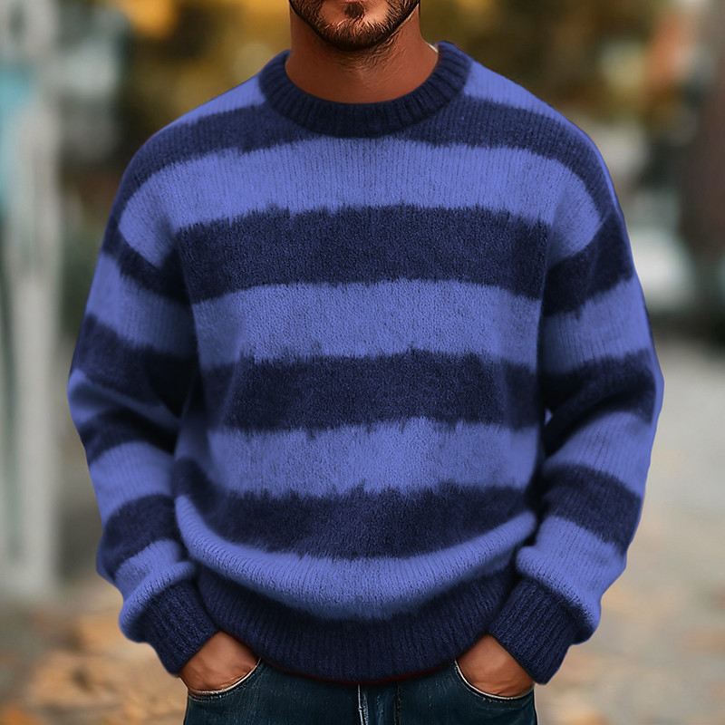 Men's Horizontal Stripes Pullover Sweater Jumper Knitwear Crewneck Casual Vacation Street Daily 3D Print Knitting Keep Warm Long Sleeve Spring Fall Winter Lake blue Yellow Blue