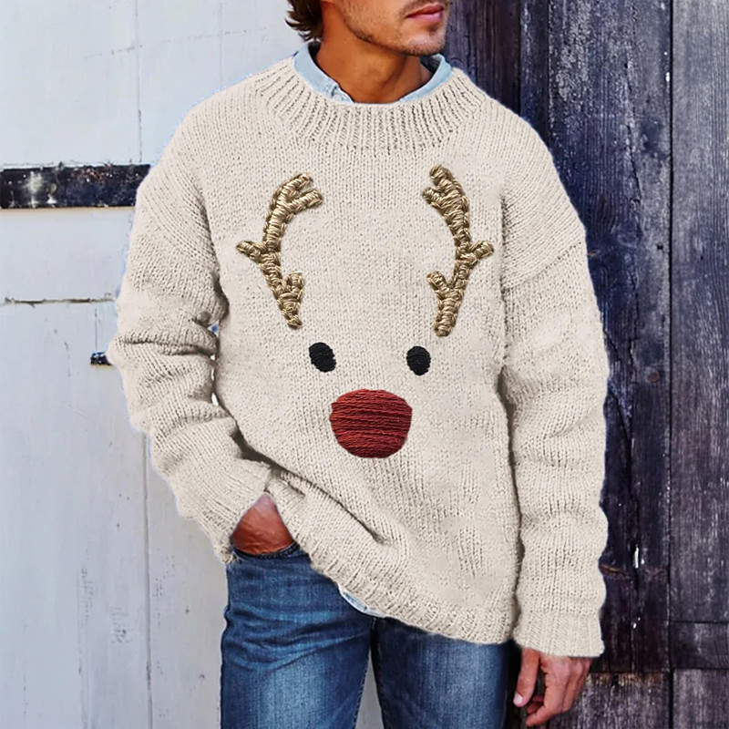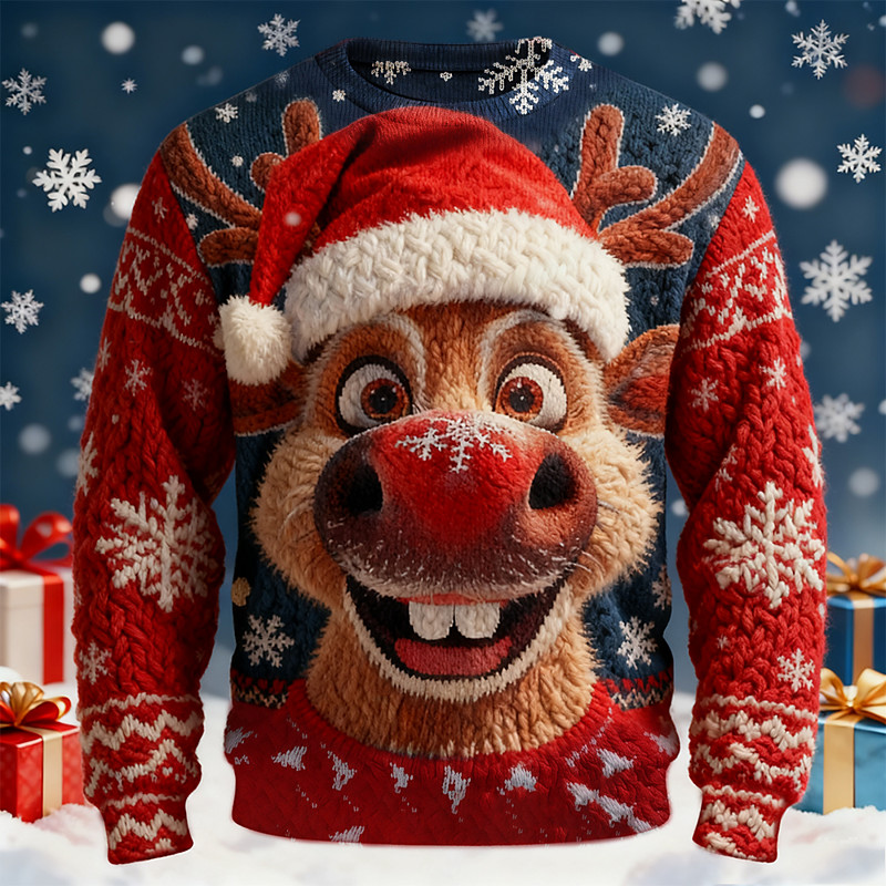 Ugly Christmas Sweater Men's Elk Print Pullover Sweater Jumper Knitwear Crewneck Casual Vacation Daily Keep Warm Long Sleeve Spring Fall Winter Blue Black Red