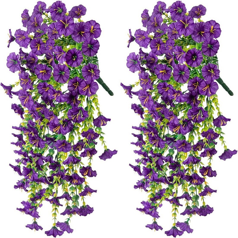 2 Pack Artificial Hanging Flowers Faux Morning Glory with Eucalyptus Leaves UV Resistant Realistic Plants for Home Garden Decor Multi-Color No Container All-Season Spring Perfect for Thanksgiving