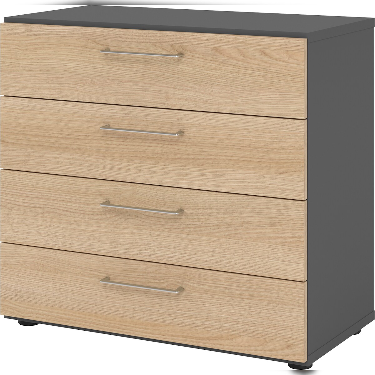 bümö smart Schubladenschrank, Büroschrank 80cm breit in Graphit/Eiche mit 4 Schüben - Bürocontainer aus Holz, Container mit Metallgriffen & Soft-Stop