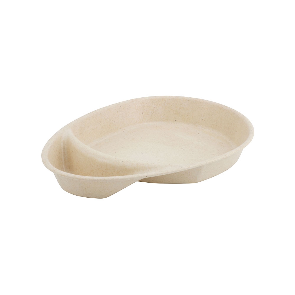 greenbox - Mehrweg-Menü-Teller "Häppy Plate" 27,5 x 20 x 3,5 cm, 2 Kammern, tropfenförmig, Cashew / creme-weiß, 60 St.