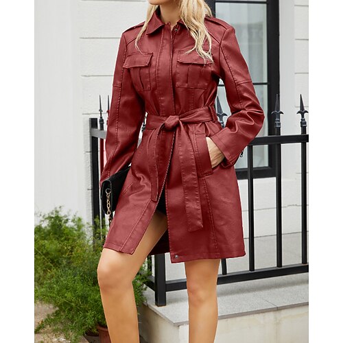 Per donna Giacca in Ecopelle Trench Trench in pelle Confortevole Tasca Bottoni Casual Semplice Vacanza Abbigliamento quotidiano Uscire Weekend Lungo Collo ripiegato Vestibilità regolare Manica Lunga