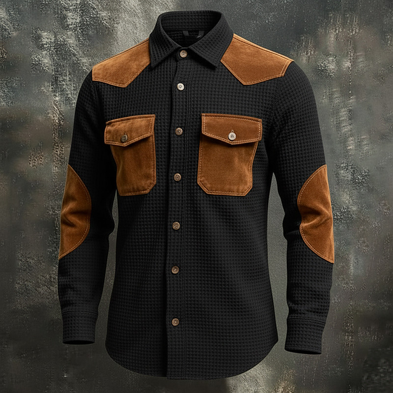 Men's Shirt Waffle Shirt Casual Shirt Vintage Shirt Button Up Shirt Cargo Shirt Black khaki Long Sleeve Color Block Lapel Outdoor Casual Patchwork Clothing Apparel Fashion Vintage Retro