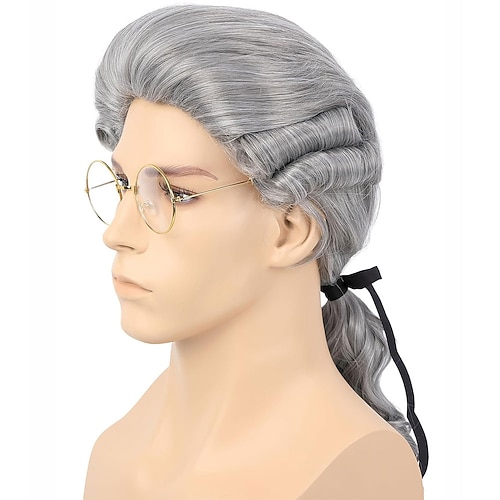 parrucca da giudice coloniale da uomo, parrucca lunga bionda incipriata e ondulata, costume, cosplay, festa, parrucche bianche
