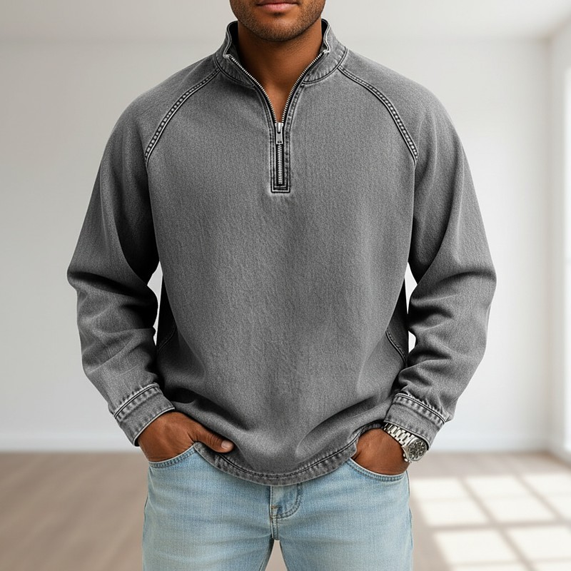 Men's 100% Cotton Acid Wash Shirt Tee Top Long Sleeve Stand Collar Spring Fall Fall Winter Plain Vintage Streetwear Casual Zip Up Basic Casual Home Street Black Pink Light Green Top Tee for Men