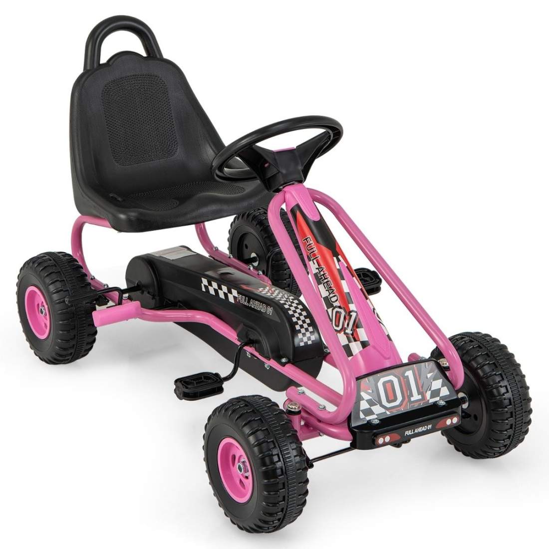 Pedal Go Kart for barn, justerbart sete og håndbrems, rosa