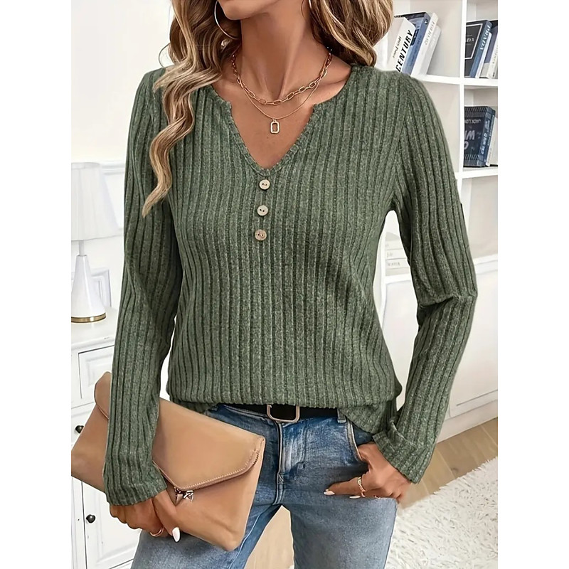 Women's Blouse Solid Color Stylish Casual Long Sleeve V Neck Regular Tops Daily Buttons Pink Army Green Blue Khaki Light Grey Summer Spring Fall