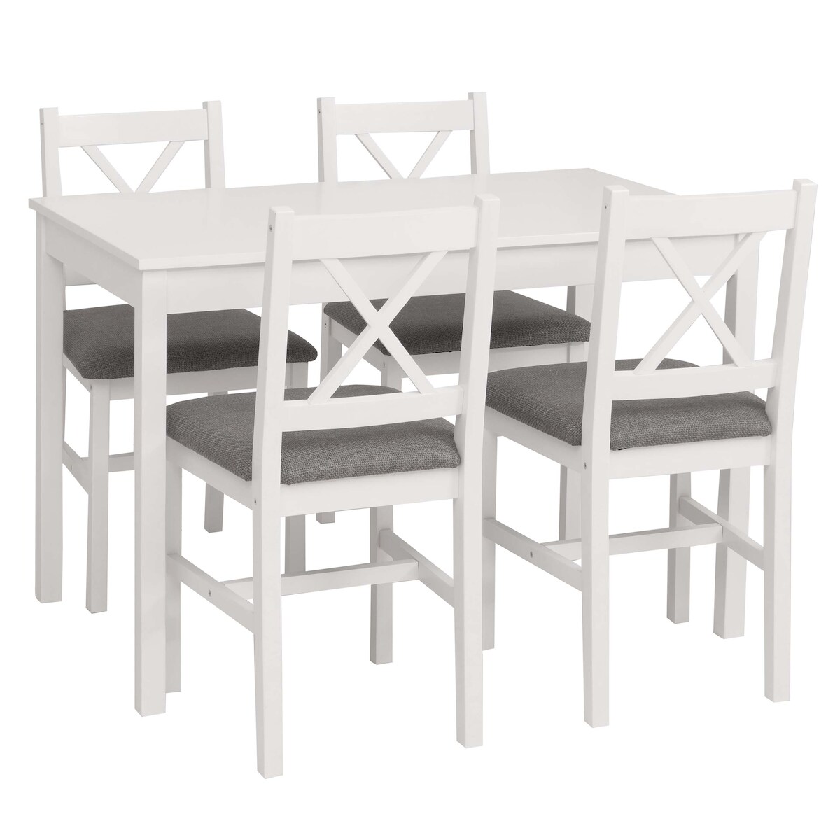 Mendler Esszimmer-Set HWC-F77, Sitzgruppe Esszimmergruppe, Massiv-Holz Kiefer Stoff Landhaus 110cm ~ weiß Polster grau