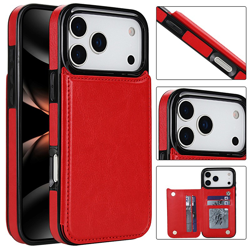 Phone Case For iPhone 17 Pro Max 17 Air Back Cover with Stand Holder Card Slot Shockproof Retro TPU PU Leather