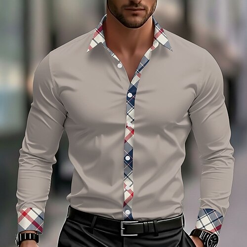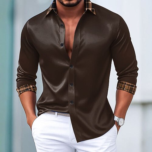 Herren Geometrisch Karo / Karomuster Hemd Satinhemd Kleidhemd Langarm Vintage-Retro Urlaub Alltagskleidung Sommer Frühling Herbst Umlegekragen 3D-Druck Hemden mit Knopfleiste Cachi scuro Braun Khaki