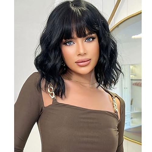 parrucca bob sintetica con frangia per donna, parrucca sintetica bordeaux resistente al calore, riccia sciolta e ondulata, parrucca bob corta rosso vino senza colla, acconciatura quotidiana